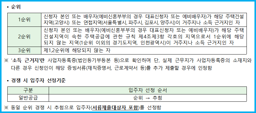 순위는 본인 또는 배우자의 거주지나 소득근거지에 따라 위와같이 구분하여 선정됩니다.