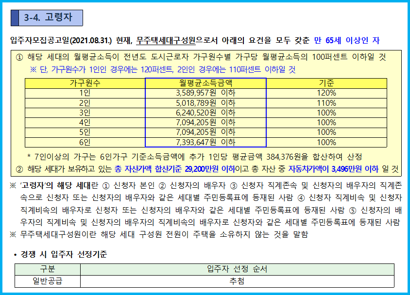 입주자모집공고일(2021년 8월 31일) 현재, 무주택세대구성원으로서 위의 요건을 모두 갖춘 만 65세 이상인 자 입니다.