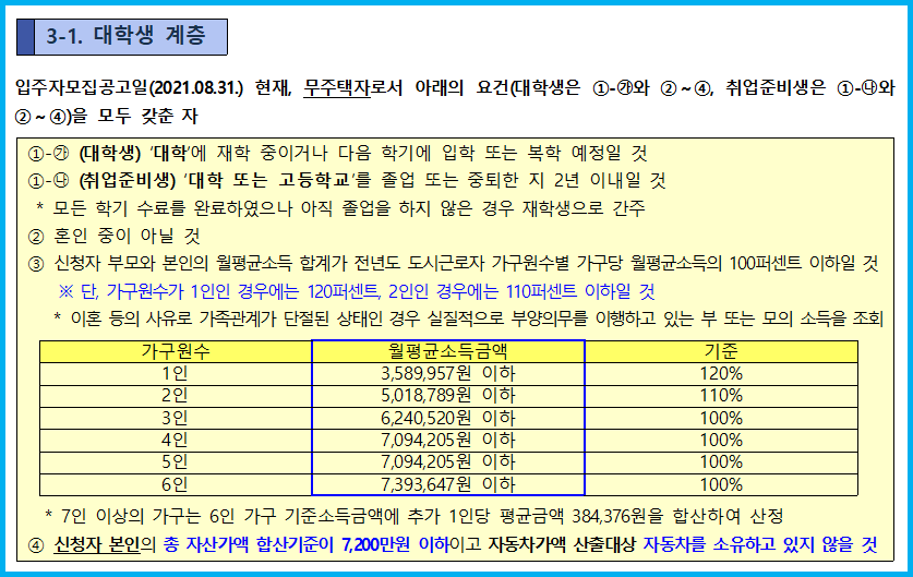 신혼부부, 한부모가족 계층의 신청자격입니다.