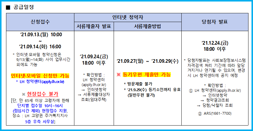 서류제출대상자 발표는 2021년 9월 24일 금요일 18시이후에 LH청약센터를 통해 확인하실 수 있습니다.